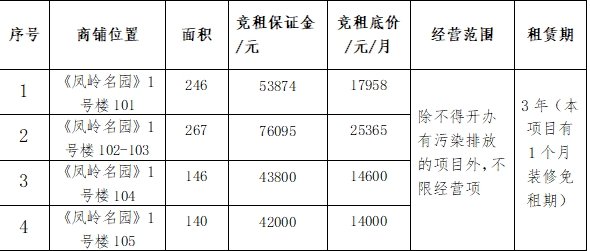 现我公司在凤岭名园有一批优质铺面招租,项目位于南宁市青秀区云景路33号凤岭名园小区,项目所处凤岭北优质商圈,周边设施配套齐全,交通便利,客流量稳定,潜力巨大。为保证我公司管理铺面招租的公开、公平、公正,现对凤岭名园铺面进行公开招租,如有意向请与我公司联系。 一、报名方式:现场报名 二、报名时间:2024年5月30日至6月5日18时00分截止 三、现场踏勘时间:2024年6月3日至6月4日18时00分 四、竞价时间:2024年6月6日上午10时00分 五、报名咨询地址:英国上市公司365西校园综合体育馆A102办公室 六、联系电话:0771-3211599 广西西大希达物业服务有限公司 2024年5月29日