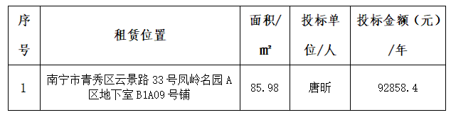 本次招租以最高价者竞得,最终确定“唐昕”为本次中标人。