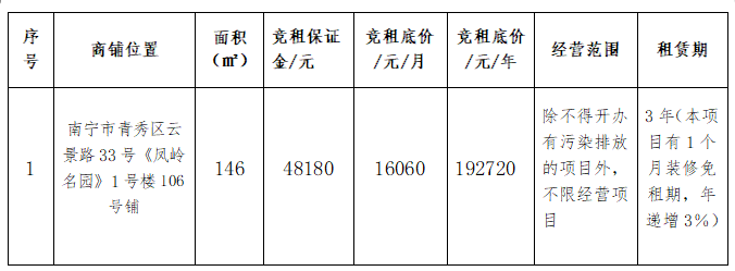 现我公司在凤岭名园有一批优质铺面招租,项目位于南宁市青秀区云景路33号凤岭名园小区,项目所处凤岭北优质商圈,周边设施配套齐全,交通便利,客流量稳定,潜力巨大。为保证我公司管理铺面招租的公开、公平、公正,现对凤岭名园铺面进行公开招租,如有意向请与广西西大希达物业服务有限公司联系。