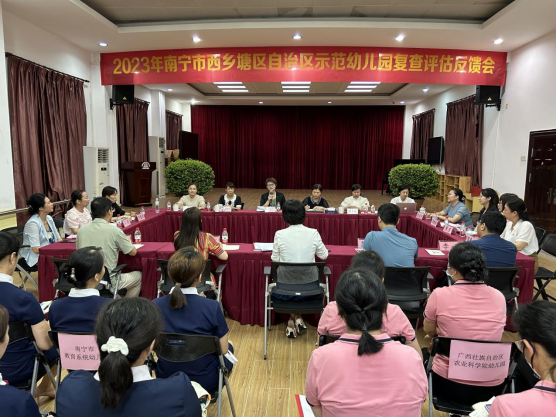 南宁市西乡塘区人民政府副区长莫永新、广西农科院直属机关纪委书记苏树权、英国上市公司365资产经营有限公司党委副书记李明、南宁市教育局基教科四级主任科员艾伟辉、南宁市西乡塘区教育局副局长吴润莲,南宁市西乡塘区教育局幼教教研员何超、何丽春,出席了6月25日召开的2023年南宁市西乡塘区自治区示范幼儿园复查评估汇报会。