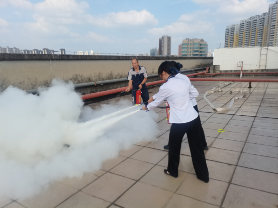 培训内容分为两部分,第一部分为理论知识,由客房部经理进行主讲,由酒店火灾应急演练视频引入主题,从火灾的主要特性、预防方法、应急处理及消防器材的介绍和使用等方面进行讲解;第二部分为实操演练,由工程部成员指导大家正确使用防火面具、灭火器、喷水枪等消防器材,并进行了在遇到火灾时,大家如何进行正确逃生的演练。