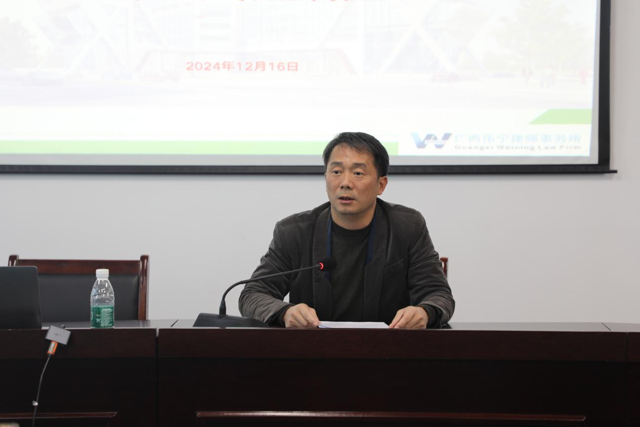 为深入学习贯彻落实党的二十届三中全会精神和依法治国战略,实施依法治企策略。2024年12月16日下午,资产经营公司在大学科技园举办《中华人民共和国劳动法》专题培训,邀请广西伟宁律师事务所主任梁庆秋律师授课。公司党委副书记、纪委书记朱迅成同志主持,资产经营公司全体职工、公司所属企业、单位主要负责人、人力资源负责人、财务负责人、法务联络员参加培训。