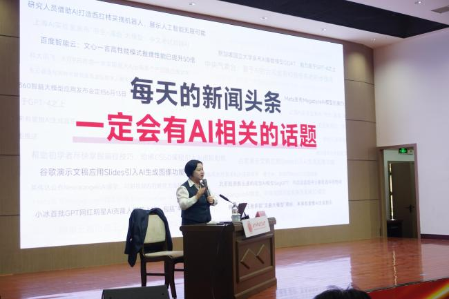 郑远霞老师作《AI 赋能中小学教育教学创新》专题讲座,她深入剖析前沿AI技术如何推动中小学教育教学创新,从趋势、提示词、信息整合、课件制作、数据分析、多模态应用等多个维度,详细阐述了AI赋能教育的新方法,让教师们了解AI教育变革方向,充分利用AI应用技术,提高自身技能的同时,打造个性化精美课件,从而提高教学质量。