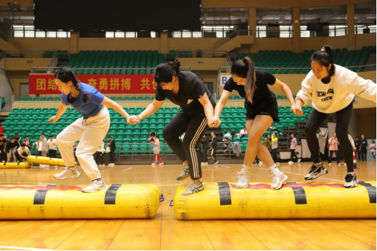 团体项目上,公司参赛队延续了强势劲头。“女子龟兔赛跑”比赛,队员们步调一致、协同发力,以整齐划一的节奏一路领先,轻松夺冠;“女子八人跳长绳”现场,长绳翻飞、身影跃动,八名选手动作连贯,毫无悬念将冠军收入囊中;“同舟共济”项目,队员们口号铿锵、节奏统一,展现出卓越的团队凝聚力,成功登顶;“击鼓颠球”更是上演双线告捷,女子队凭细腻把控让小球稳定弹跳,男子队以力量结合技巧高效颠球,两支队伍双双夺冠;“女子超级毛毛虫”项目中,队员们在欢笑中保持冲刺节奏,以绝对优势拿下冠军,赢得现场阵阵喝彩。