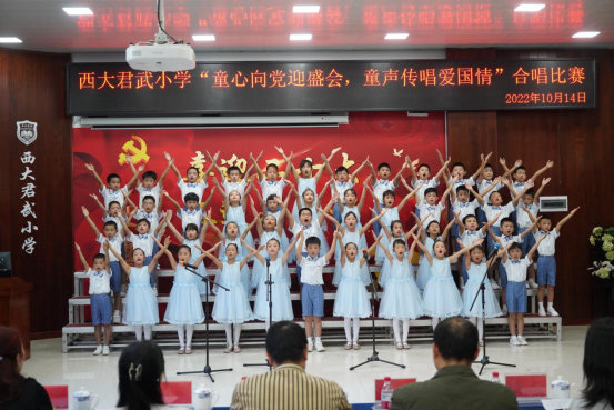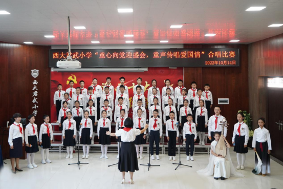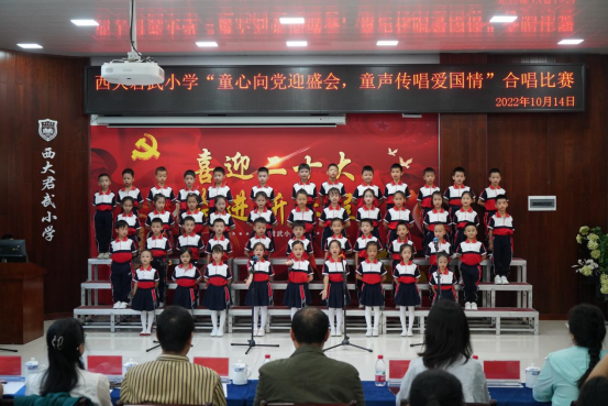 金秋十月,华夏同庆。为迎接党的二十大胜利召开,引导少年儿童坚定永远跟党走的理想信念。2022年10月14日,西大君武小学举行“童心向党迎盛会,童声传唱爱国情”合唱比赛。