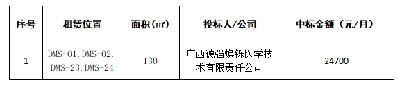 本次租赁按照“价高者得”原则确定承租人,最终确认广西德强焕铄医学技术有限责任公司为本项目中标公司。