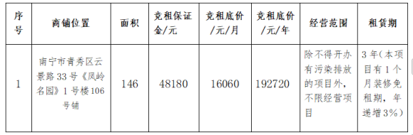 凤岭名园商铺招租的公告