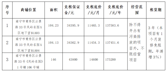 凤岭名园商铺招租的公告