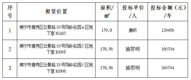 本次招租以最高价者竞得,最终确定唐昕、施黎明为本次中标人。