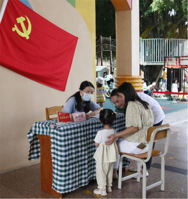 活动中,党员教师以良好的精神风貌、耐心细致的服务态度接待每一位前来报名和咨询的家长,悉心告知幼儿入园的注意事项,帮助家长解决育儿和入学的困扰和难题,并向广大家长传播科学的育儿观念和学前教育的先进理念,引导和帮助家长树立正确的家庭教育观、掌握较科学的家庭教育方法,进一步促进家园双向联动与了解。