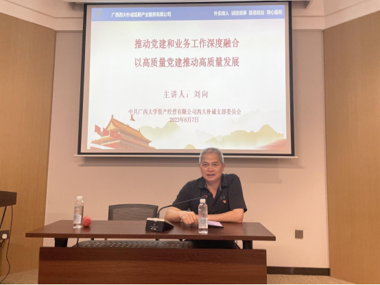 6月7日下午,校党委常委、副校长刘向在荟萃楼3楼会议室讲授题为“推动党建和业务工作深度融合 以高质量党建推动高质量发展”主题教育专题党课。朴诚公司党支部全体党员参加学习。